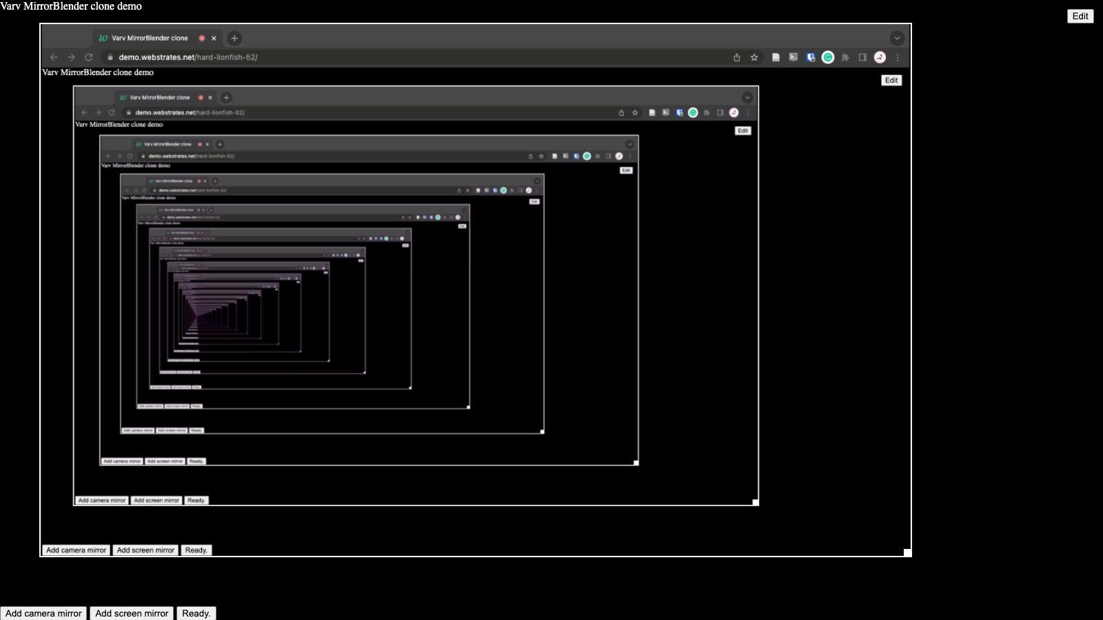 The MirrorBlender (see original Paper) clone allows users to share their screen and webcam video in a 2D spatial canvas. The shared content can be resized and moved around enabling spatial video conferencing and collaboration.