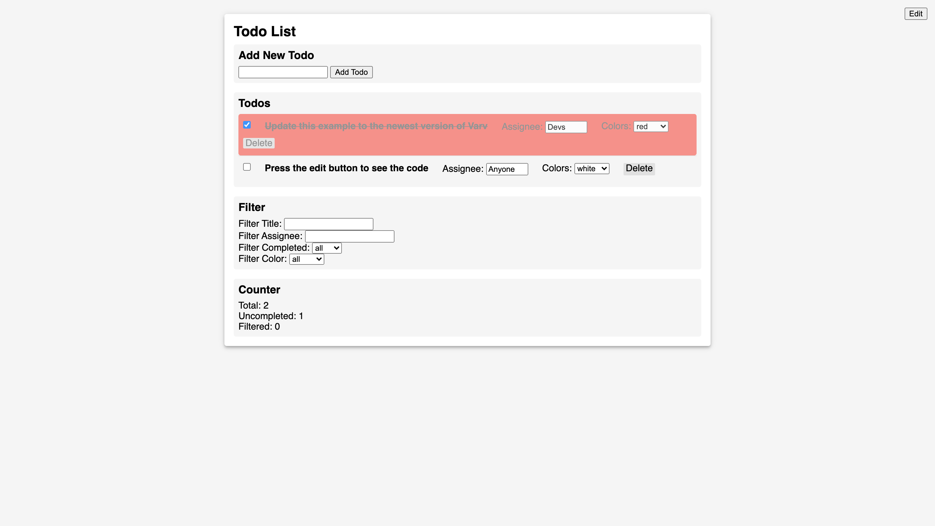 The todo list showcases Varv’s ability to create applications one feature at a time.